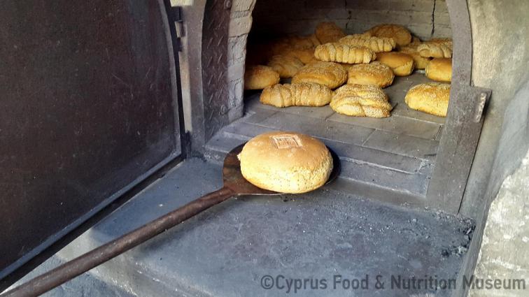 Πρόσφορο κατά το ξεφούρνισμα. Ζυμώματα του γάμου, Κυπερούντα.