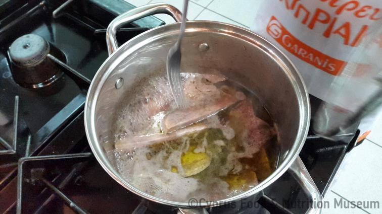 Κομμάτια κολοκασιού στο τηγάνι. Αφού μαριναριστούν, τα υλικά για τον καππαμά τσιγαρίζονται σε λάδι (Μαγειρεύω Κυπριακά 2015).